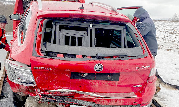 Hier sehen Sie einen Unfallschaden nachdem ein Auto mit Hundebox von hinten gerammt wurde, noch keine Crash – Test gesehen der dieses verhalten bei einer Hundebox testet.
