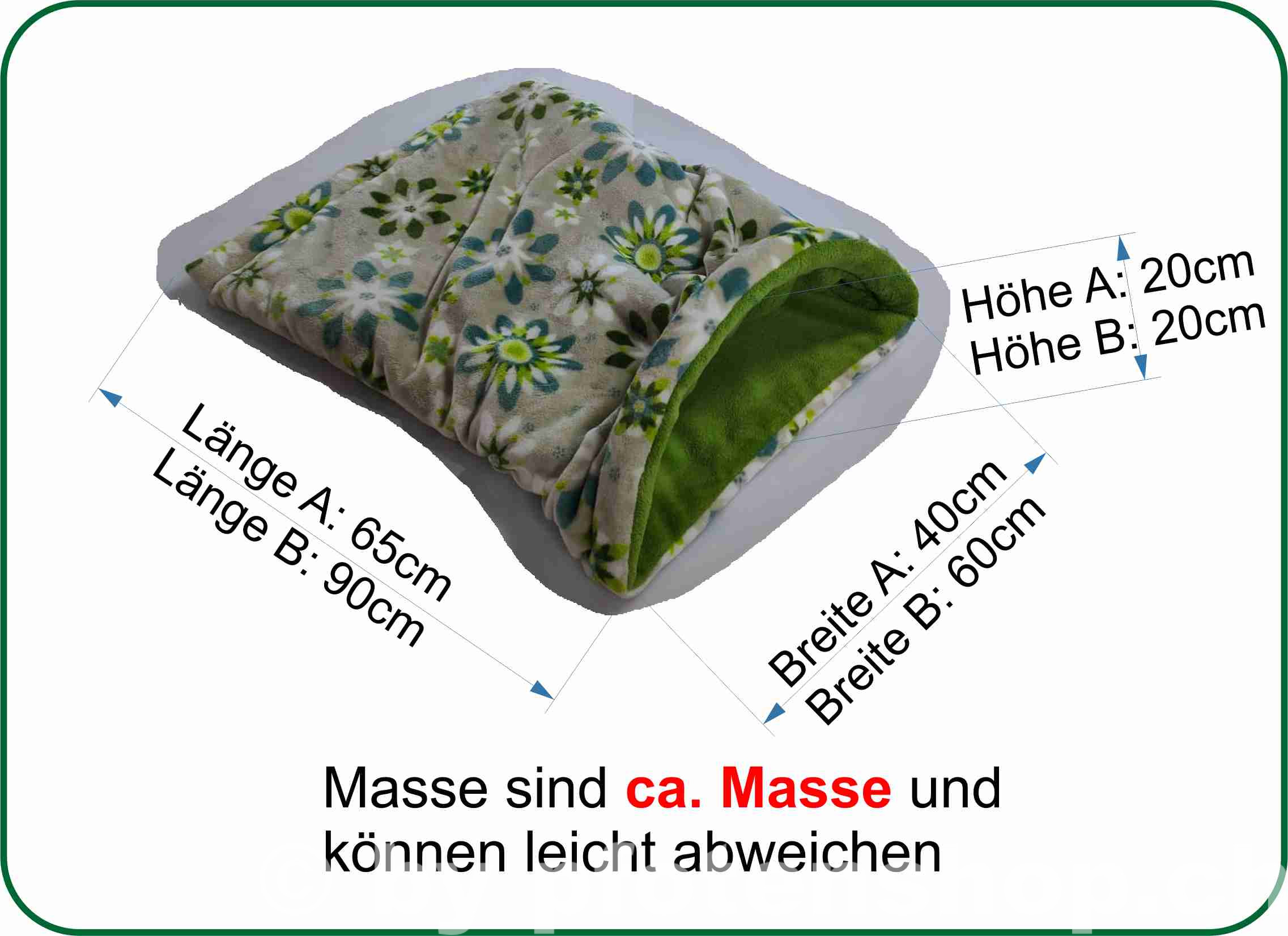 Diese Schlupfsäcke sind aus 3 Lagen Fleece, Du kannst einen Langhaar Fleece, Langfloor Fleece haben oder einen Wellness Fleece aussen und als Zwischenlage ist immer ein Wellness Fleece.